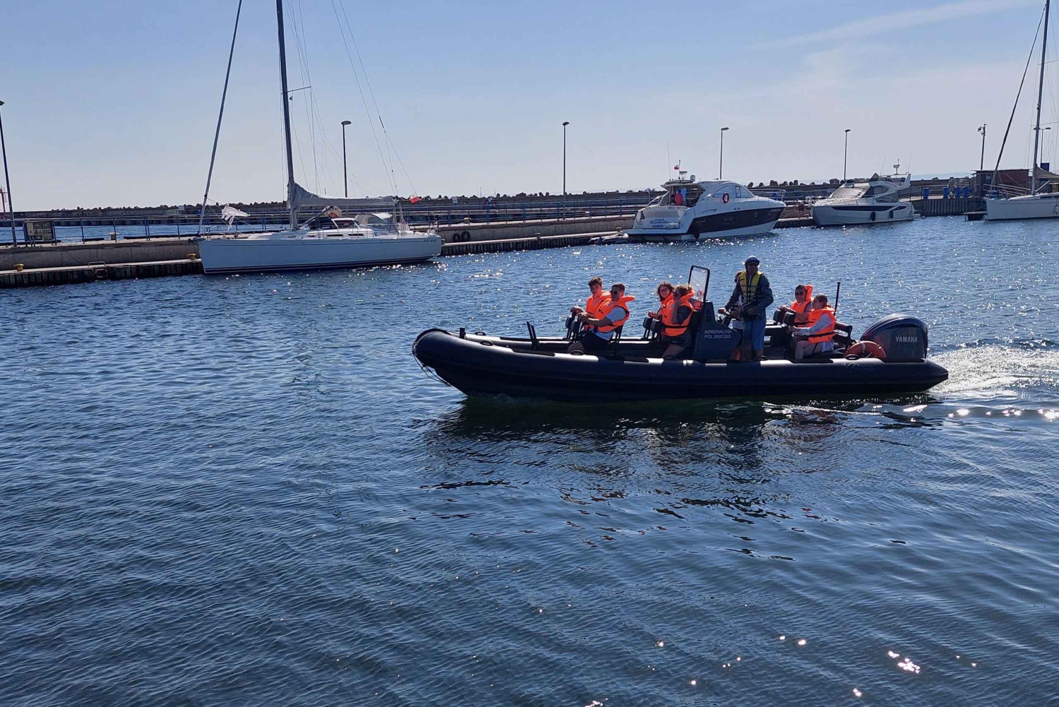 Hello Our speed boat with brand new Yamaha Engine 300 HP it is real beast on the water... We can float fast up to 100 km/h but we don't floating fast like this all the time... We slow down often to explore and admire beauty of 3 City vievs from the water. This cruise is must have if it's your first in 3 City or if You are next nex time but You never try it. Just take Your friends or family and feel this amazing emotions on the water. You don't need any licence or skills. Our experienced and well-trained crew will take care of your safety. Most popular places witch we showing to our guests: Orłowo cliff Ruins of torpedo room Gdynia Rewa penisula Our Base is Located in Sopot: Sopot Marina at the end of the pier in Sopot (the longest wooden pier in Poland 515m) If You have additional questions, fell free to text or call to us. See You on boardIncludes