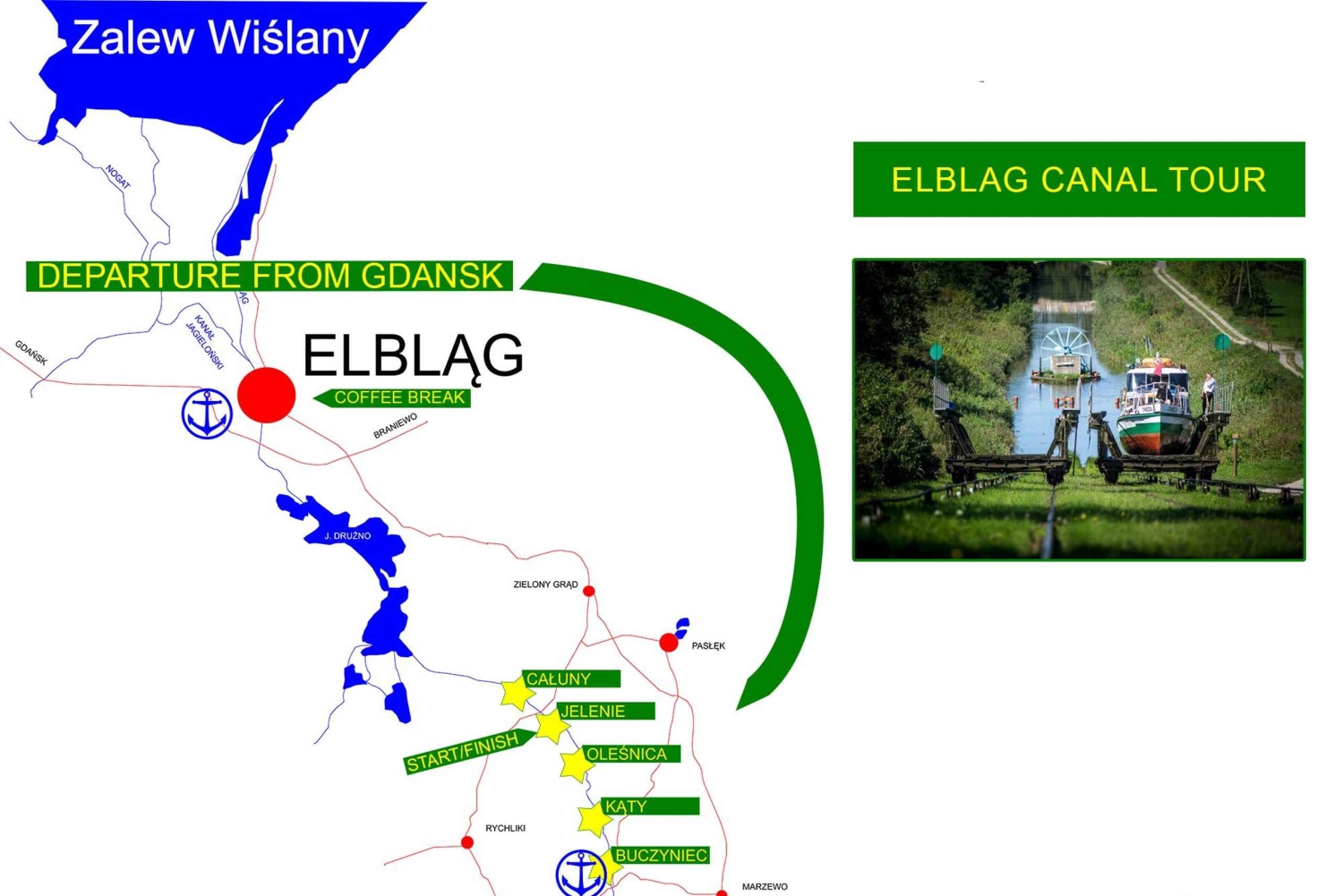 Fin du tour en bateau à Jelenie et transport à Elblag
